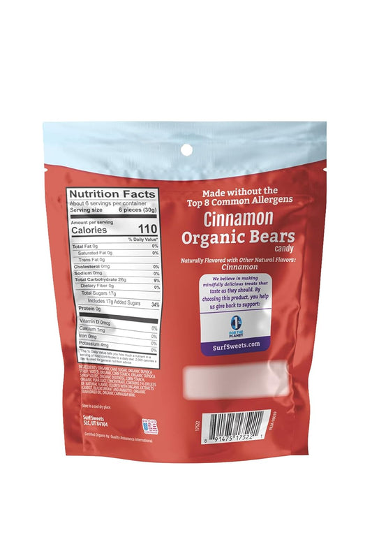Organic Cinnamon Bears - Vegan, Gluten-Free, Non-GMO - 6 Oz (Pack of 8) - USDA Certified - Surf Sweets