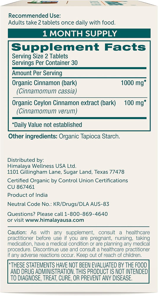 Organic Cinnamon Tablets for Glycemic Support - 1100mg Daily - Cassia & Ceylon Cinnamon Extract - Non-GMO - Vegan & Gluten-Free - 60 Tablets