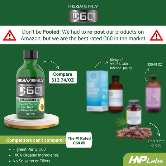 Organic Cold Pressed Avocado Oil with Sublimated C60 for Energy Boost and Mental Clarity - USA Made, GMP Certified for Safety - Slow Aging Naturally