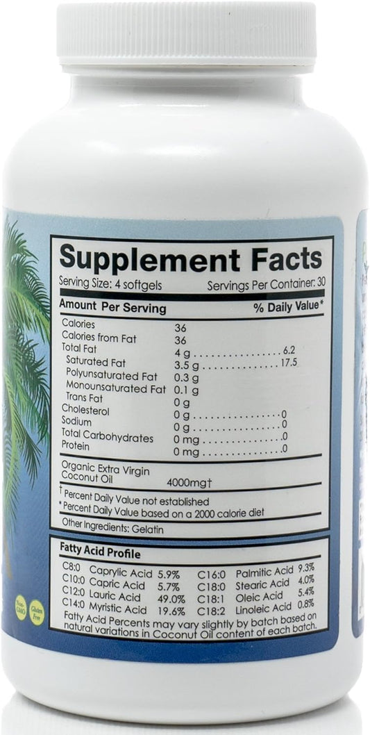 Organic Cold-Pressed Coconut Oil Softgels - 120 Softgels, 1000mg Each - Extra Virgin, Unrefined - Pure & Natural Supplement by Perfect Supplements