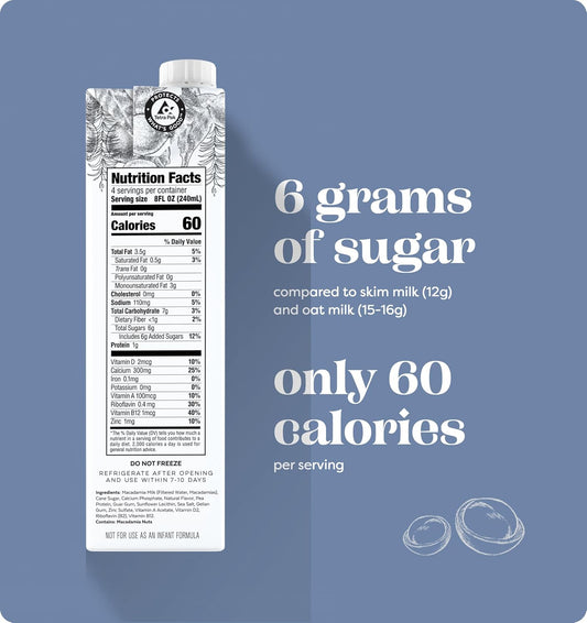Organic Dairy-Free Macadamia Nut Milk, 32 Fl Oz (Pack of 6) - Creamy Vegan Milk Alternative, Lactose-Free, Plant-Based Shelf Stable Milk
