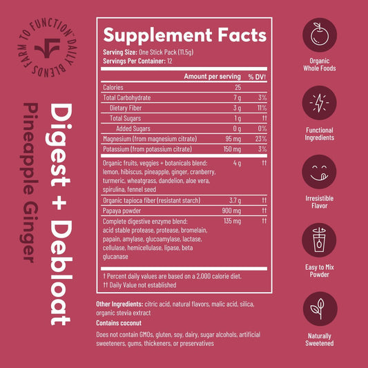 Organic Digestive Enzyme Drink Mix - Anti-Bloating Supplement with Prebiotics, Superfoods - Pineapple Ginger Flavor