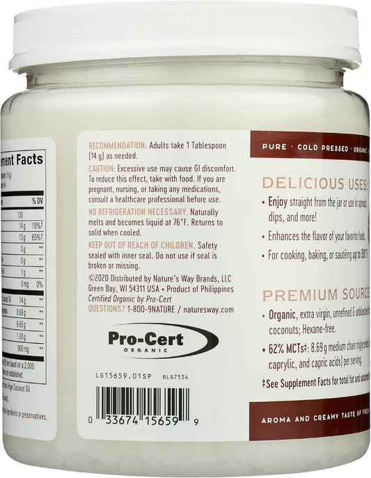 Organic Extra Virgin Coconut Oil Cold-Pressed, 32 Oz - Pure Source of MCTs from Nature's Way