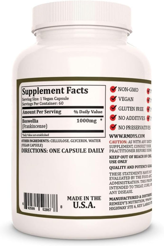 Organic Frankincense Extract Powder Capsules | 1,000mg, 60 Vegan Herbal Supplements | Non-GMO, Gluten/Dairy Free | 2 Month Supply