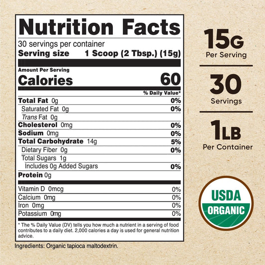 Organic Gluten-Free Non-GMO Maltodextrin Powder - 1lb by Nutricost