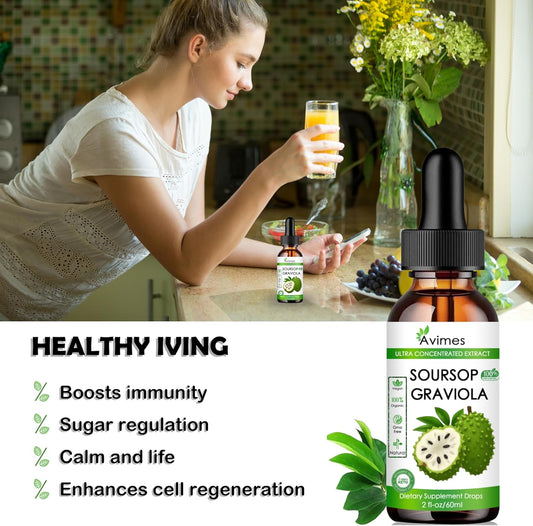 Organic Graviola Soursop Liquid Extract for Cellular Health, Immune Support, Stress Relief - 2 Oz