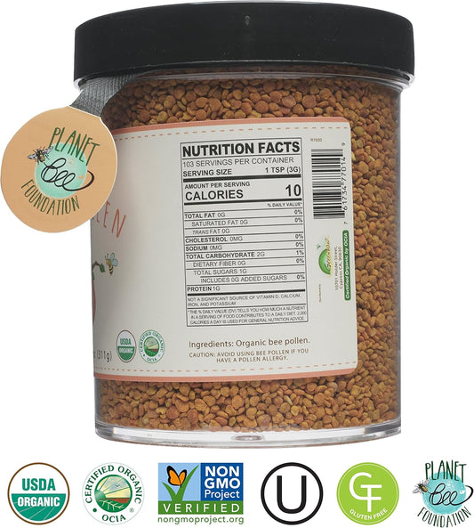 Organic Greenbow Bee Pollen - 100% USDA Certified, Non-GMO, Halal & Kosher - Superfood Rich in Proteins, Vitamins, Minerals - Gluten Free - 16oz