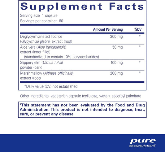 Organic Gut Health Supplement with Marshmallow Root, Aloe Vera, Slippery Elm - Non-GMO Vegan Capsules for Men & Women - 60 ct.