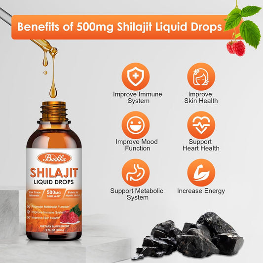 Organic Himalayan Shilajit Drops (2 Pack) with Glutathione & Quercetin - 500mg Pure Resin for Immunity & Skin Health - Sugar-Free Formula with 85+ Trace Minerals for Men & Women