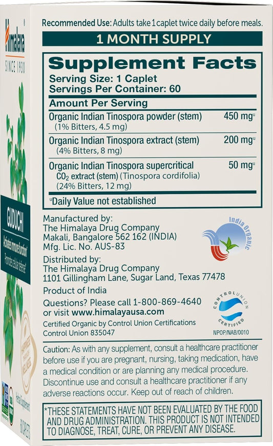 Organic Himalaya Guduchi Caplets - Immune Support & Cellular Defense - 700mg - 60 Count x 2 - 2 Month Supply