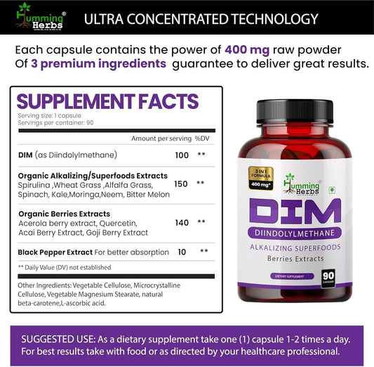Organic Humming Herbs DIM Supplement with Spirulina, Berries, and Black Pepper Extract - 90 Capsules