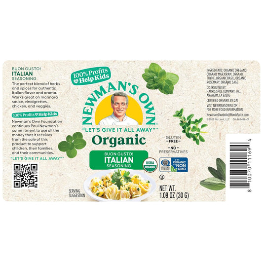 Organic Italian Seasoning by Newman's Own - Ideal Blend for Bread, Pizza, Salads, and Chicken; USDA Certified, No Preservatives, Salt-Free, Non-GMO, Gluten-Free; 1.09 Oz Bottle