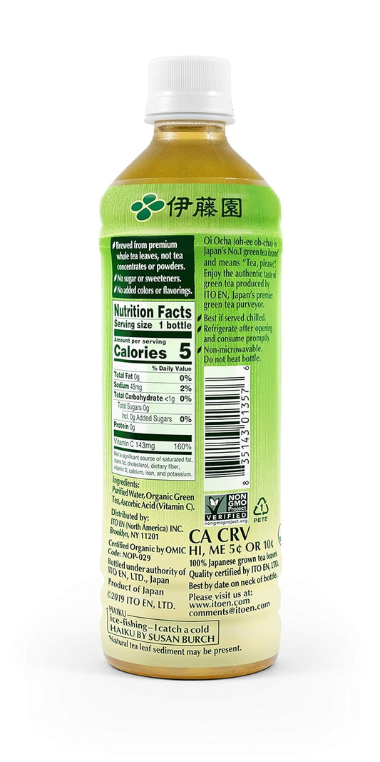 Organic Ito En Oi Ocha Green Tea, Unsweetened, 16.9 oz, 12 Pack, Zero Calories