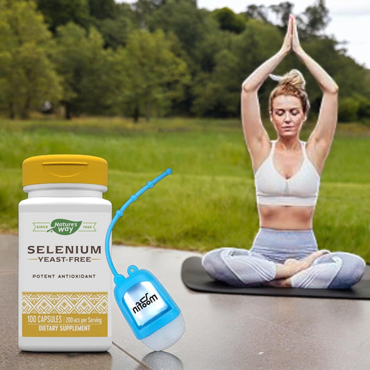 Organic L Selenomethionine Selenium Capsules 200 mcg for Immune & Thyroid Support - Antioxidant Formula, 60 Servings with Moofin Hand Sanitizer Dispenser 6-Pack