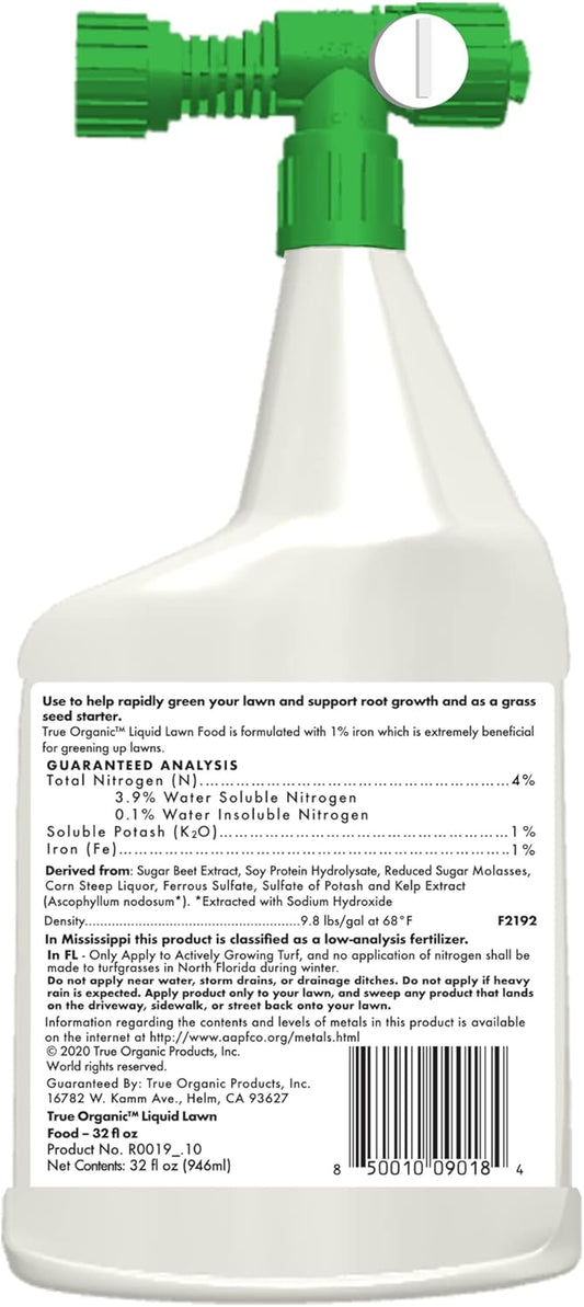 Organic Liquid Lawn Fertilizer with Iron for Rapid Green-Up - Covers 2,000 Sq. Ft. - 32 fl. oz. Hose-End Sprayer