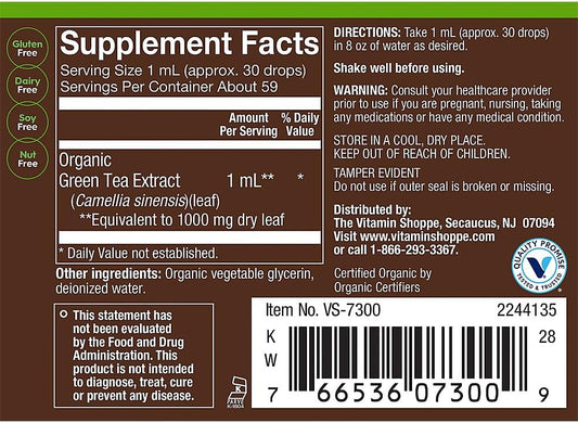 Organic Liquid Green Tea Full Spectrum Cellular Health Support Alcohol-Free 2 fl. oz.