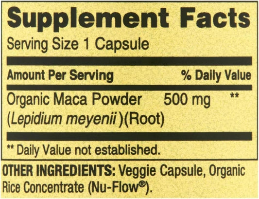 Organic Maca Root Capsules 500mg for Men and Women - 90 Vegetarian Capsules - Dietary Supplement by Spring Valley