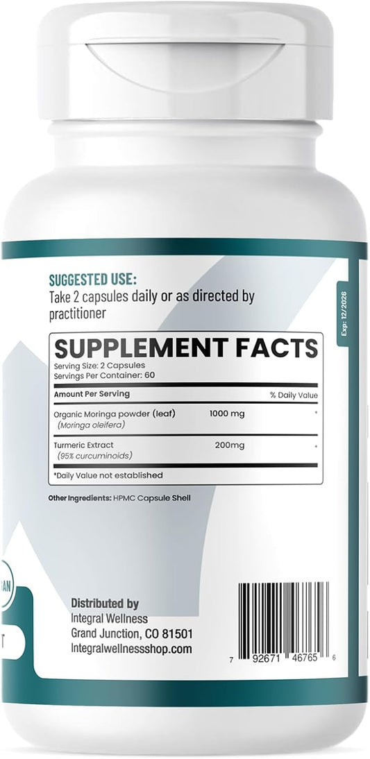 Organic Moringa and Curcumin Capsules for Holistic Wellness - 60 Capsules, Third-Party Tested