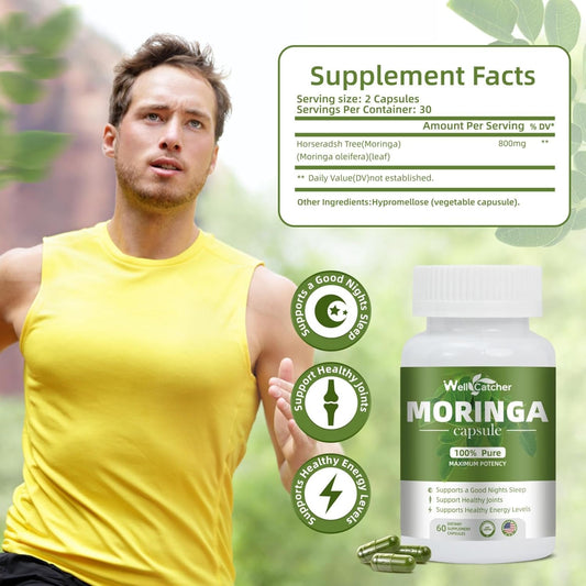 Organic Moringa Capsules - 800mg Nutrient-Rich Powder for Energy, Skin & Gut Health - Vitamins & Amino Acids Included