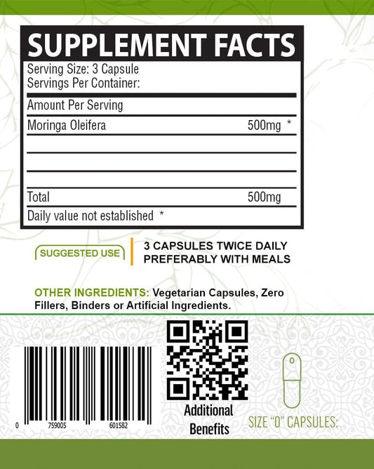 Organic Moringa Extract Capsules - 500mg | 60 Vegan Capsules | Pure Moringa Oleifera Supplement | Gluten-Free & GMP Certified
