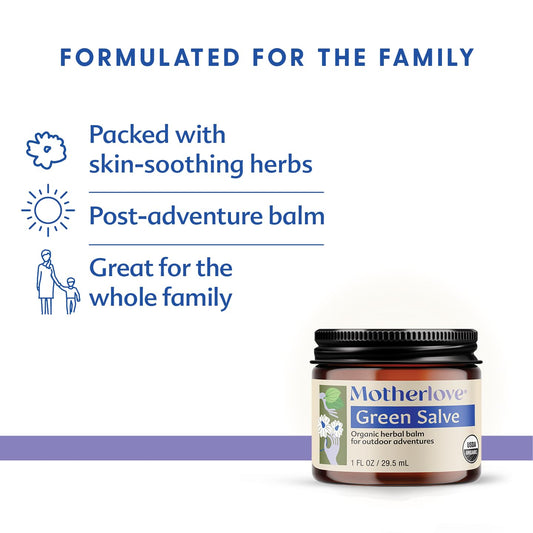 Organic Motherlove Green Salve (1 oz) - Family-Friendly Outdoor Adventure Ointment for Skin Relief