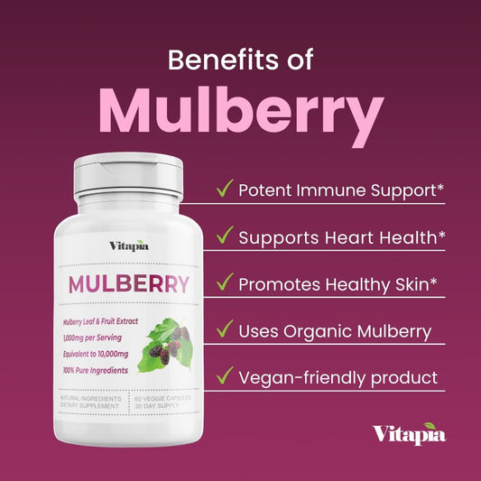 Organic Mulberry Leaf & Fruit Extract 10,000mg - Gut & Heart Health Support - Antioxidant - 60 Veg Capsules - Non-GMO, Gluten-Free, Vegan