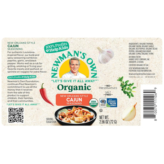 Organic New Orleans-Style Cajun Seasoning for Hot Wings & Crawfish Boil | USDA Certified, Non-GMO, Gluten-Free | 2.56 Oz Bottle
