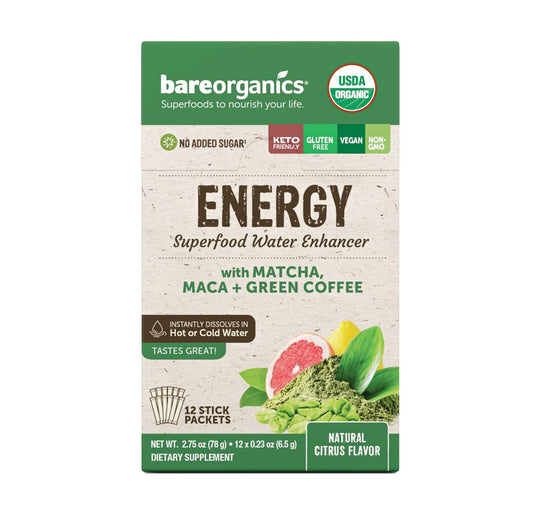 Organic On-The-Go Energy Drink Mix Packets - Set of 12 Superfood Water Enhancers by BareOrganics