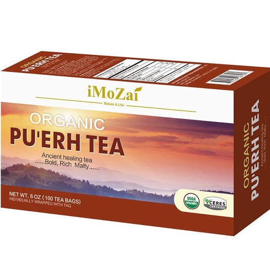 Organic Puerh Tea Bags - 100 Count Individually Wrapped by Imozai
