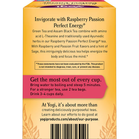Organic Raspberry Passion Perfect Energy Tea - 96 Tea Bags (16 Bags per Pack, 6 Packs) - Caffeinated Energy Support with Black and Green Tea Leaf