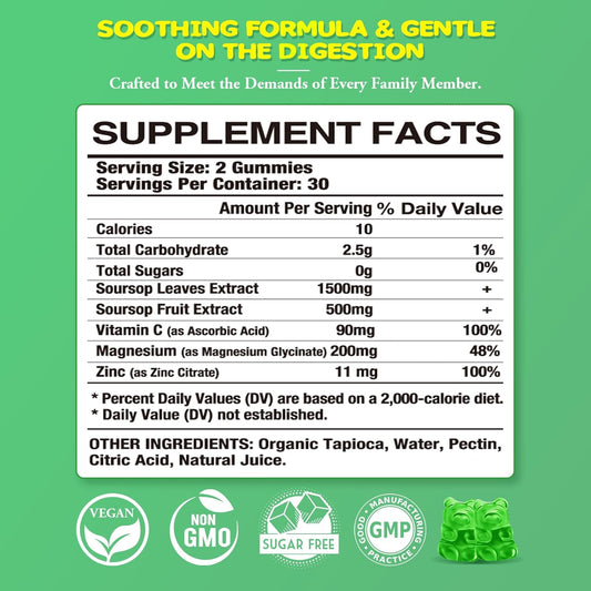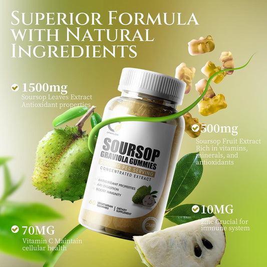 Organic Soursop Graviola Gummies - Digestive Aid, Immune Support, Antioxidant - Non-GMO, 60 Gummies