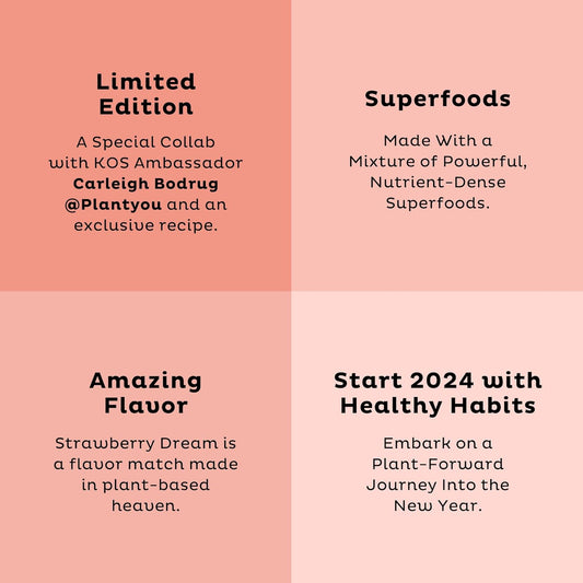 Organic Strawberry Dream Plant Protein Powder - Vegan Superfood Blend for Women & Men - Rich in Vitamins & Minerals - Dairy, Soy, Gluten Free - 24 Servings