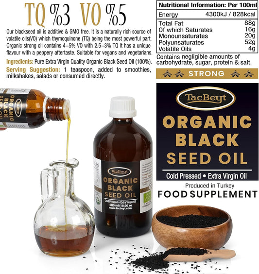 Organic Turkish Black Seed Oil Liquid | High Thymoquinone & Volatile Oil | USDA Certified, Non GMO, Cold-Pressed | Strong 16.90 Fl Oz Bottle