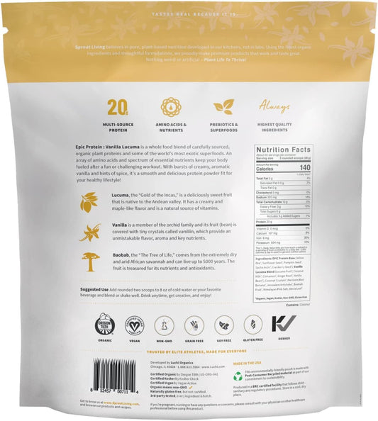 Organic Vanilla Lucuma Pea Protein Powder - 1 lb | Plant-Based Epic Protein Supplement by Sprout Living