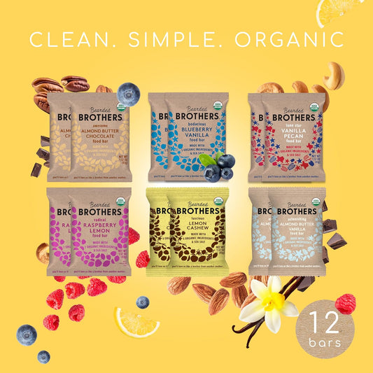 Organic Vegan Protein Energy Bars, Almond Butter Jelly (10 Pack) - Gluten Free, Paleo, Fiber, Whole 30, Non GMO Low Glycemic Snacks by Bearded Brothers