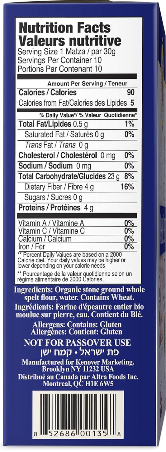 Organic Whole Spelt Matzo Crackers (3 Pack, 10.5oz) | Unsalted Spelt Matzah | Stay Fresh Packs | Kosher Certified