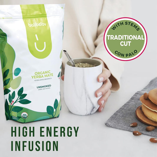 Organic Yerba Mate Tea Loose Leaf - 2.2 lb Bag - Traditional Cut for High Energy - Unsmoked Artisanal Blend - Gluten-Free & Vegan Friendly - Hot or Cold Drink - 2.2 Pounds Pack of 1
