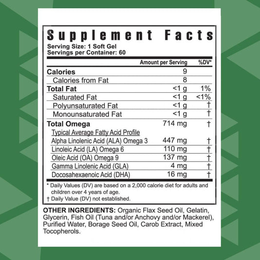 Organic Youngevity Ultimate EFA Supplement - Omega 3, 6, & 9 Fatty Acids - Borage, Flax & Fish Oil - 180 Count Pack