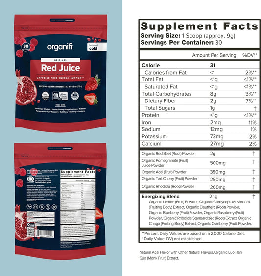 Organifi Red Juice Powder: Boost Energy, Reduce Afternoon Crashes, Support Digestion & Immune System - 90 Servings