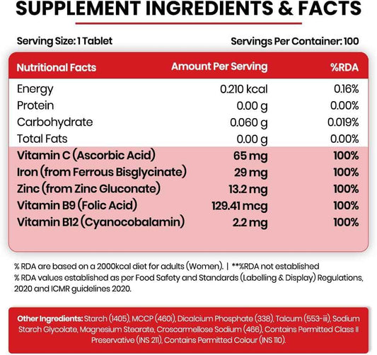 Organics Chelated Iron with Vitamin C,B12,Zinc & Folic Acid | Boost Hemoglobin Levels | Improves Concentration Level,Energy & Blood Building-120 Veg Tablets