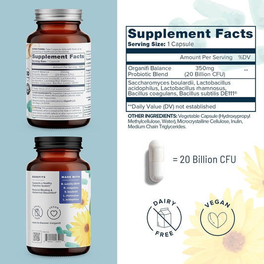 Organifi Balance Probiotics with 5 Resilient Strains - 30 Vegan Capsules for Improved Digestive Health