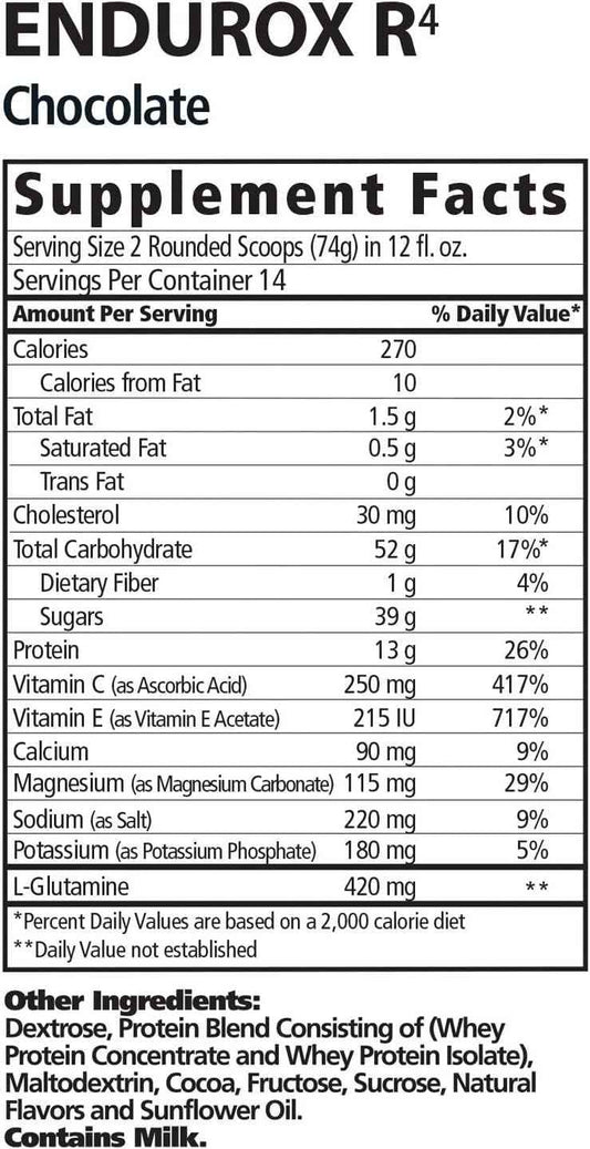 PacificHealth Endurox R4, Post Workout Recovery Drink Mix with Protein, Carbs, Electrolytes and Antioxidants for Superior Muscle Recovery, Net Wt. 2.29 lb., 14 Serving (Chocolate)