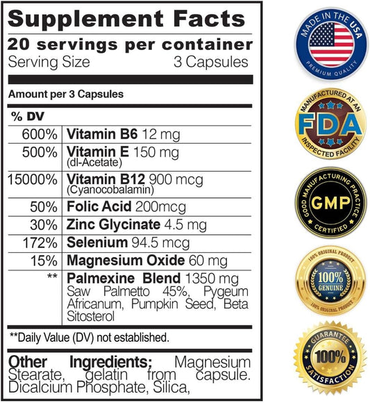 Palmexine Prostate Health Complex with Saw Palmetto, Zinc, and Pygeum Africanum - Reduce Frequent Urination Support