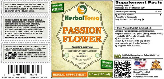Passion Flower (Passiflora Incarnata) Tincture, Organic Dried Herb Liquid Extract (Brand Name: HerbalTerra, Proudly Made in USA) 2x4 fl.oz (2x120 ml)