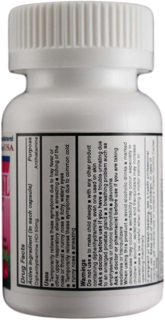 Pharbedryl Diphenhydramine HCI 50mg Allergy Medicine & Antihistamine - 100 Capsules by Advance Pharmaceutical