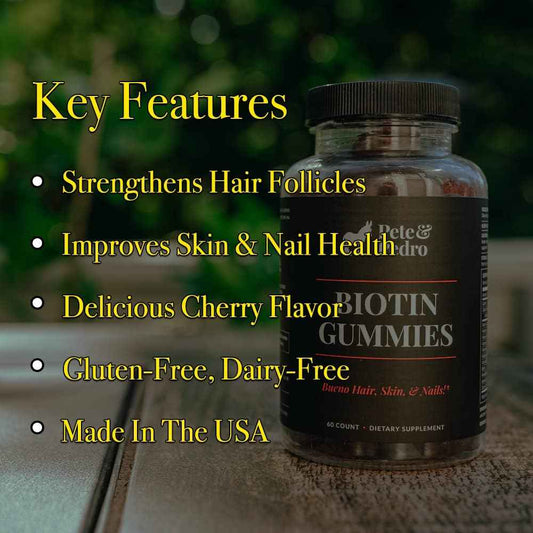 Pete & Pedro BIOTIN Gummies for Hair, Skin & Nails Growth for Women & Men |Hair Grow Supplement for Stronger Skin, & Nails | Cherry Biotin Gummy 5000mcg Per Serving | Seen on Shark Tank, 60 Count