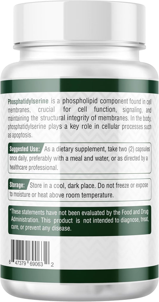 Phosphatidylserine 100mg Capsules - Clinically Tested Sharp-PS® Green - 120 Vegetarian Caps - Vegan, Non GMO, Gluten & Soy Free