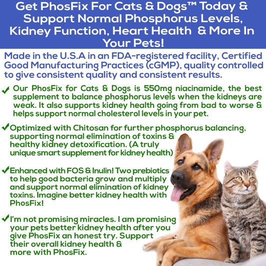PhosFix Kidney Health Supplement for Cats & Dogs - Supports Normal Phosphorus Levels and Kidney Function - Natural Chitosan Formula for Kidney Restoration