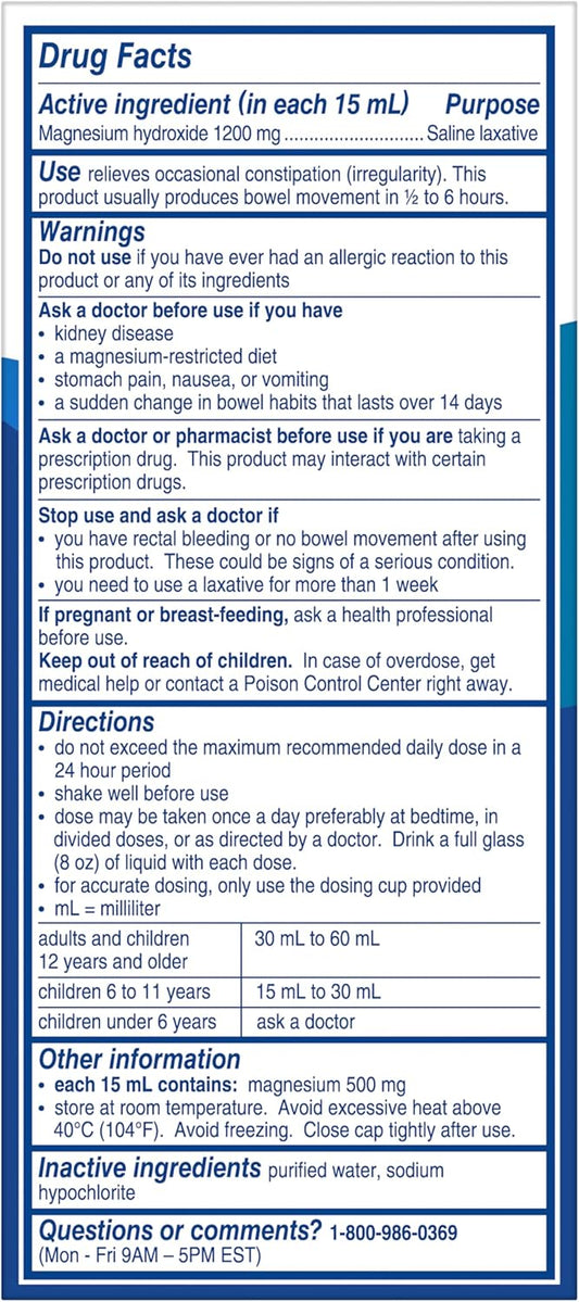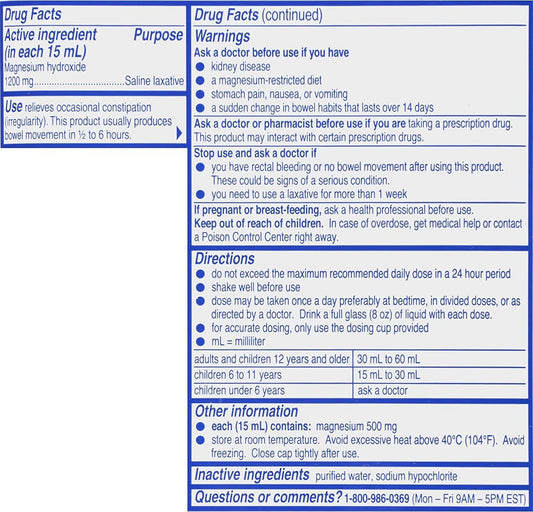 Phillips' Milk of Magnesia Liquid Laxative, 26 oz (Pack of 2) - Gentle Overnight Relief for Constipation - #1 Brand, Cramp-Free Formula