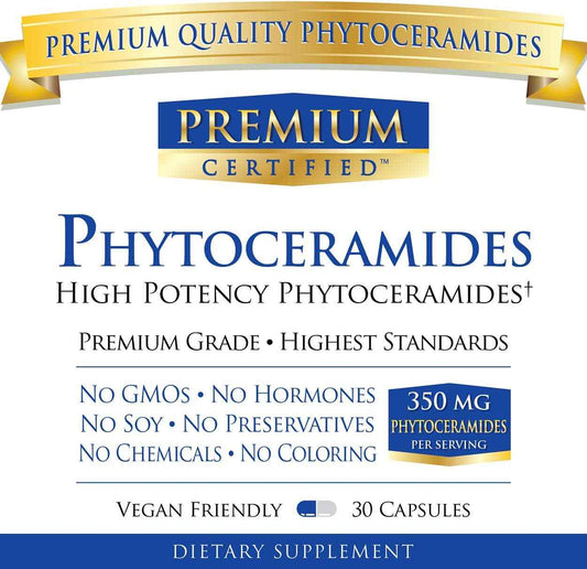 Phytoceramides 350mg from 100% Wheat -Vitamin A, C, E and D3 - Reverse Aging Skin, Replenish Moisture & Repair Skin - 100% Pure Natural - 30 Capsules - Vegan Friendly